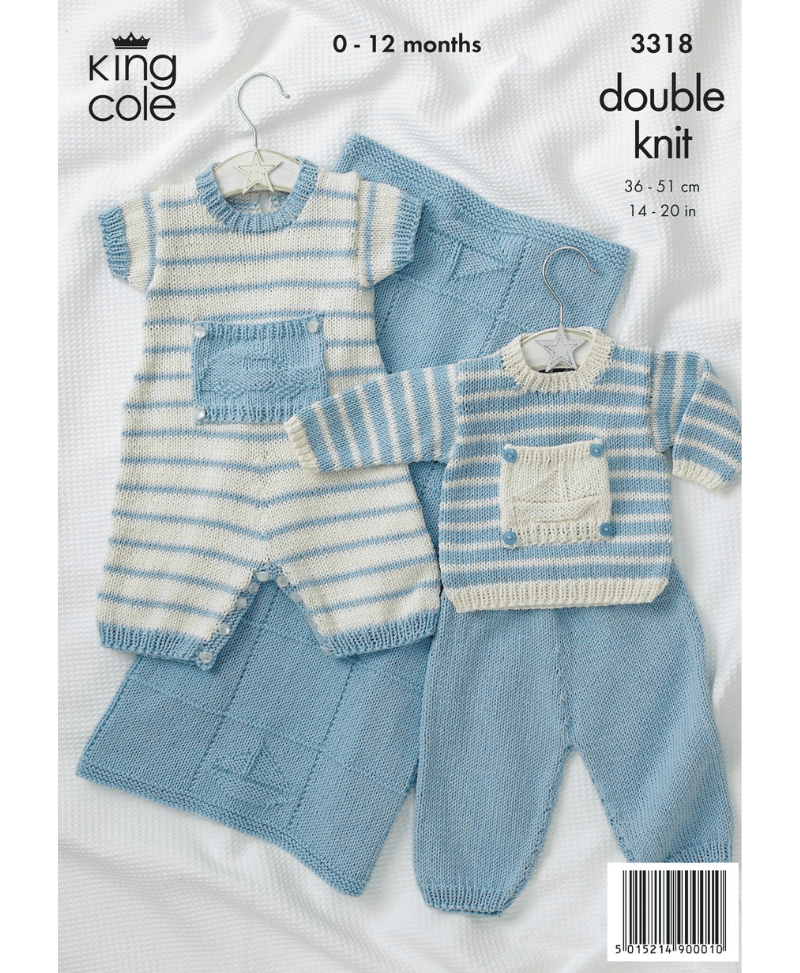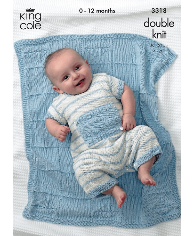 King Cole 3318 Baby Little Boy Blue Sweater, Trousers, Romper & Blanket in Bamboo Cotton DK