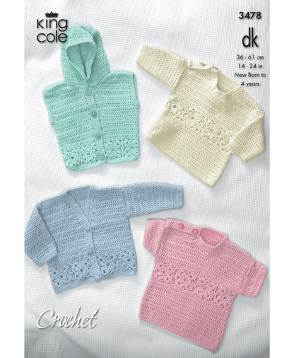 King Cole 3478 Crochet Cardigan, Hooded Gilet and Sweaters in Bamboo Cotton DK
