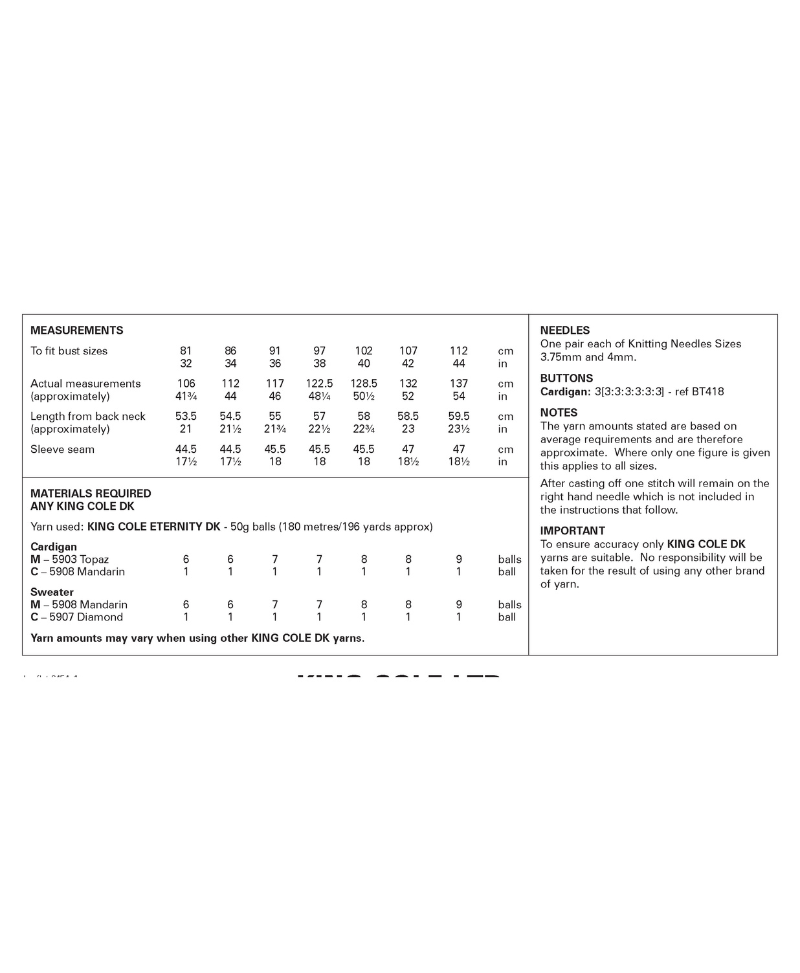 This pattern & yarn pack contains all you need to knit the cardigan from pattern 6454, just choose the correct bust size below and the rest is done for you.