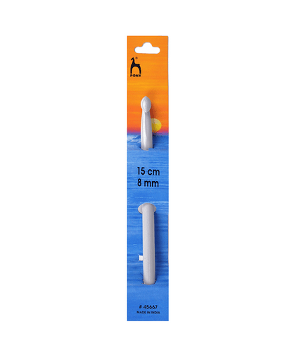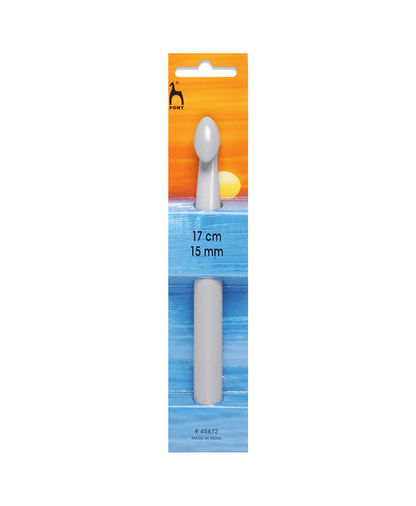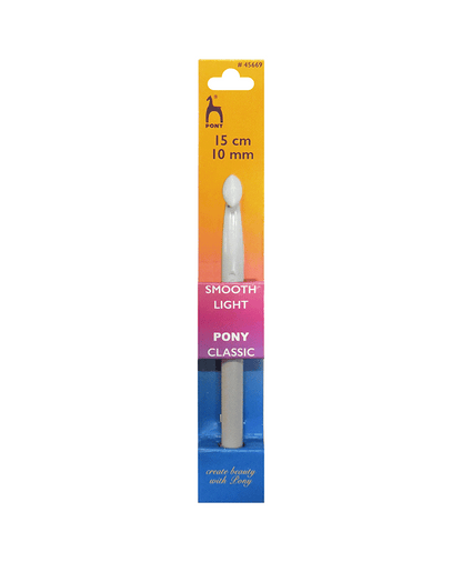 Plastic for the larger sizes (5.50mm - 20.00mm), and aluminium for the smaller sizes (2.00mm - 5.00mm) - whatever the material, Pony's Classic Crochet Hooks are designed to be sturdy, versatile, and easy to use. With a smooth surface for faster crochet work, and a gently tapered tip that prevents your yarn from snagging, these hooks also have a beautifully rounded handle end to sit gently in your hand, giving you hours of comfortable crochet.