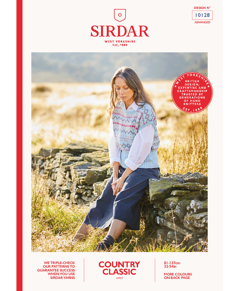 This lightweight fairisle pullover knitted in Sirdar Country Classic 4 Ply is perfect for British summers. Wear on its on warmer days or layer over a long length tee or shirt for effortless chic. Featuring intricate fairisle stitching to the body, this knit is great for the more experienced knitter and the high ribbed hem creates a flattering contemporary shape.