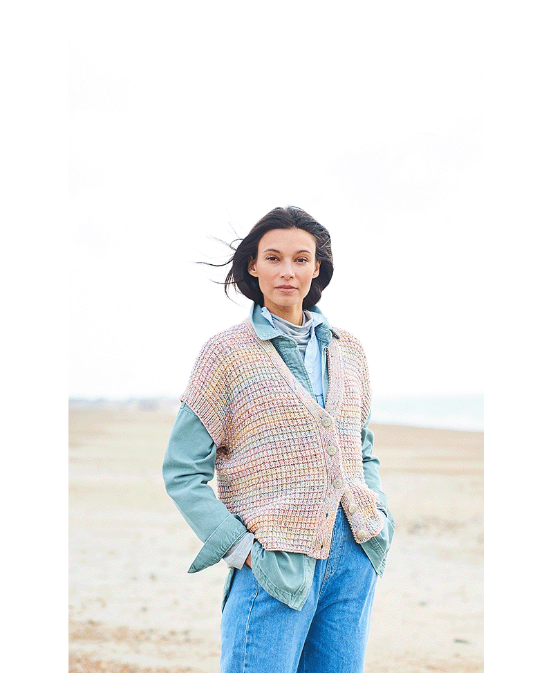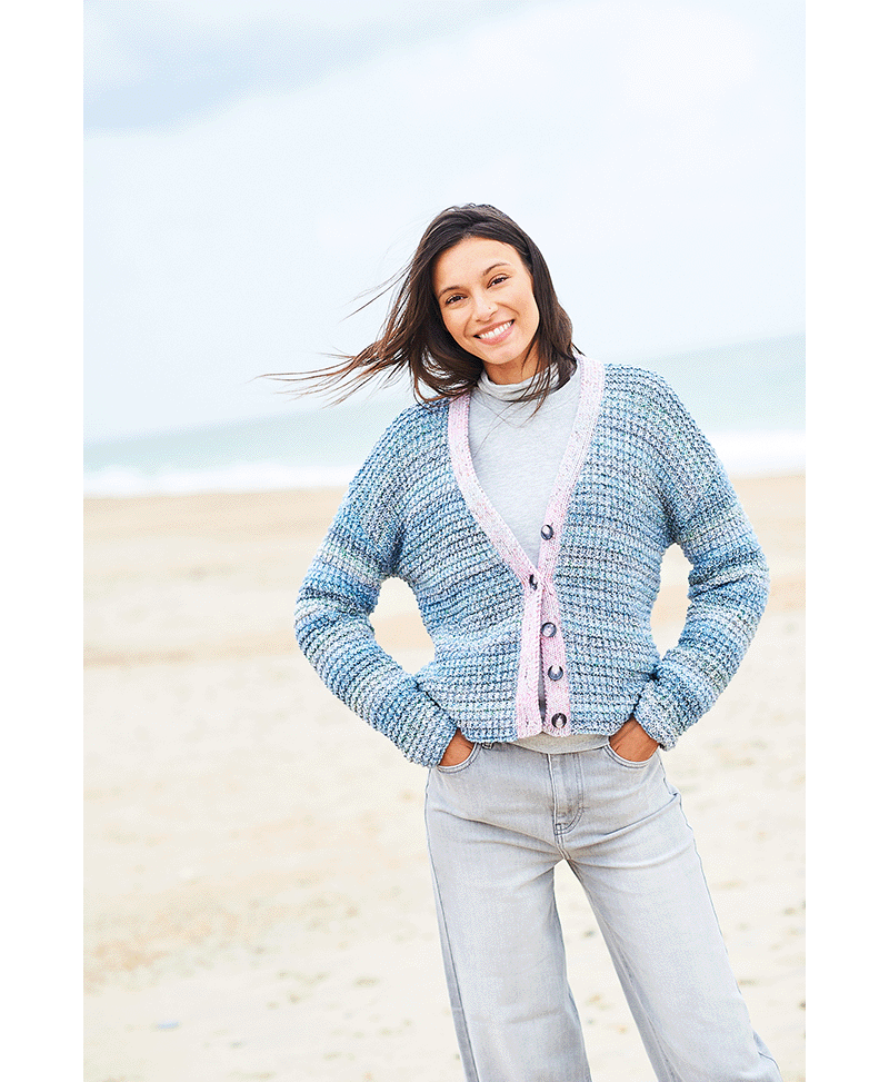 Do you prefer a casual style? This cardigan and waistcoat are the perfect garments for a relaxed look. We really like the contrast border and textured stitch to add detail.