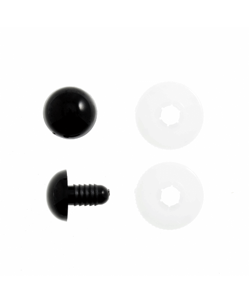 Round black plastic safety eyes for toys and amigurumi, available in 6, 9, 12 and 15mm sizes.