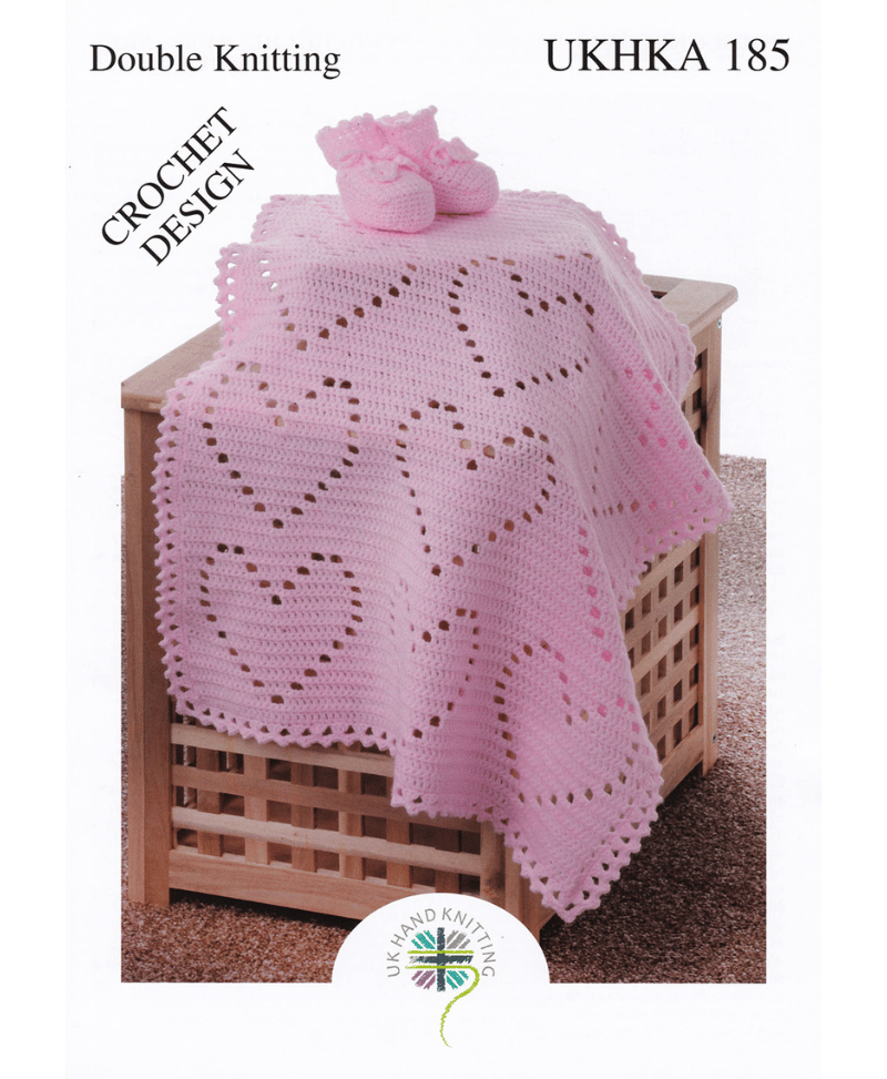 UKHKA 185 UK Hand Knit Assoc. Double Knitting Crochet Blanket & Bootees