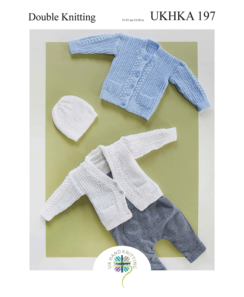 UKHKA 197 UK Hand Knit Assoc. Double Knit Cardigans and Hat