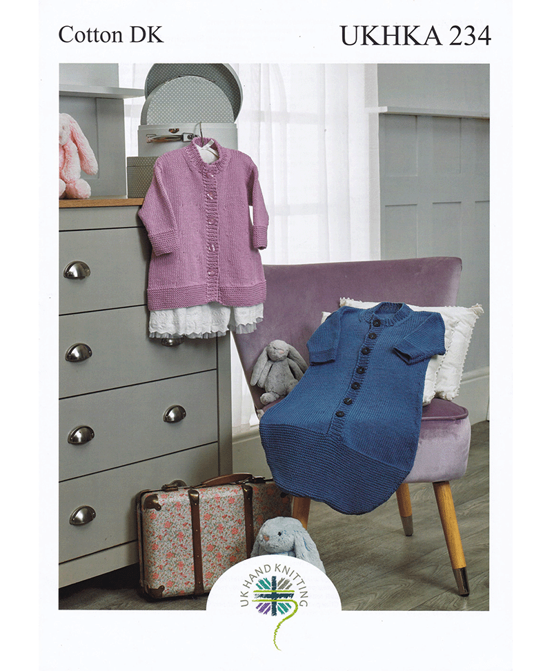 UKHKA 234 UK Hand Knit Assoc. Double Knit Cardigan and Sleeping Bag