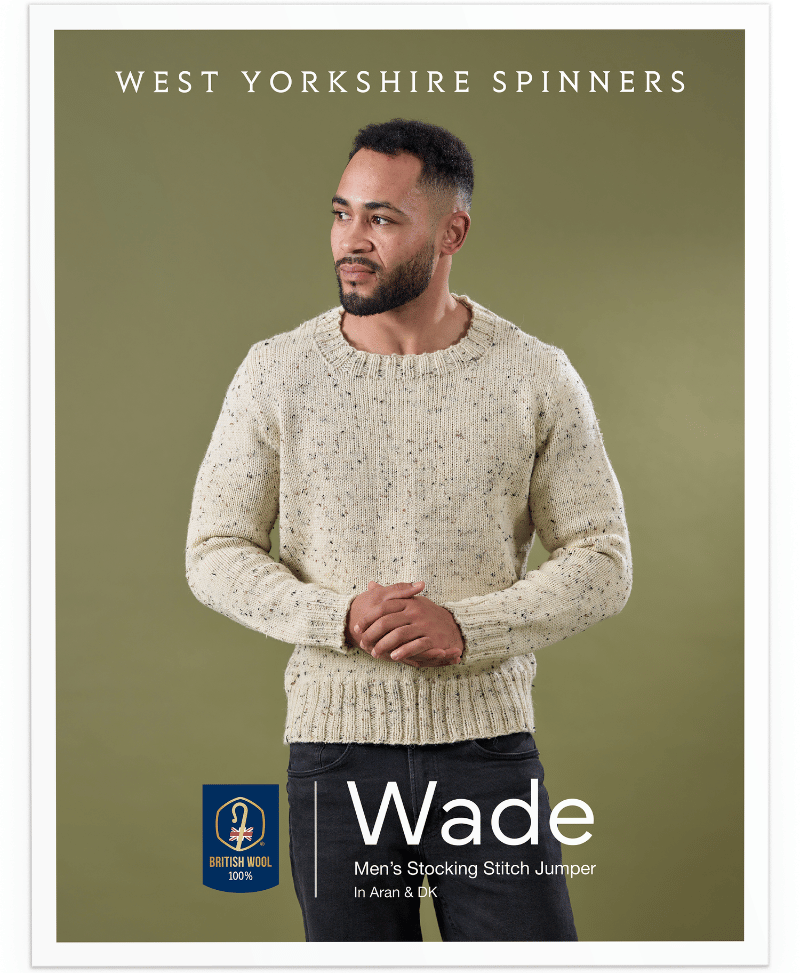 The Wade men's stocking stitch jumper pattern from West Yorkshire Spinners can be knit in either DK or aran weight yarn. We would suggest either our WYS ColourLab DK for the DK version or our WYS ColourLab Aran or WYS The Croft Aran for the aran version